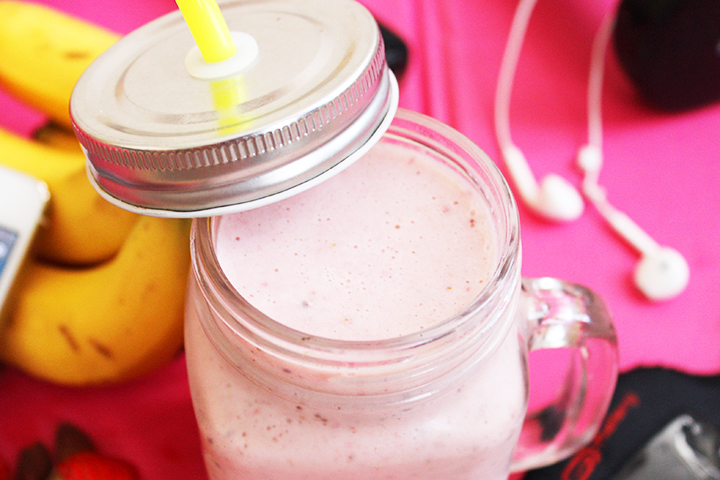 Jeudi dernier j’ai décidé de me faire un smoothie avec les fraises un peu trop mure que j’avais acheté pour le coup à -50% (les bons plans « promo » du mardi dans les commerces). Il était vraiment trop bon et surtout très frais et énergisant ! Parfait pour un after-sport d’été.