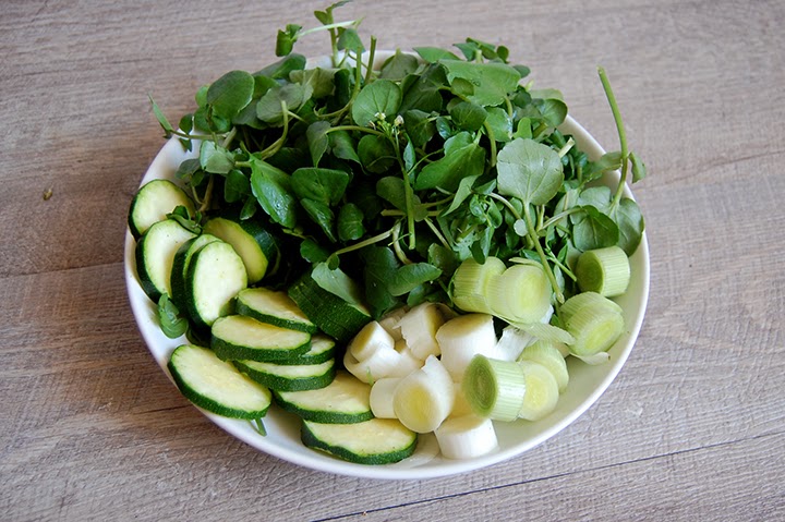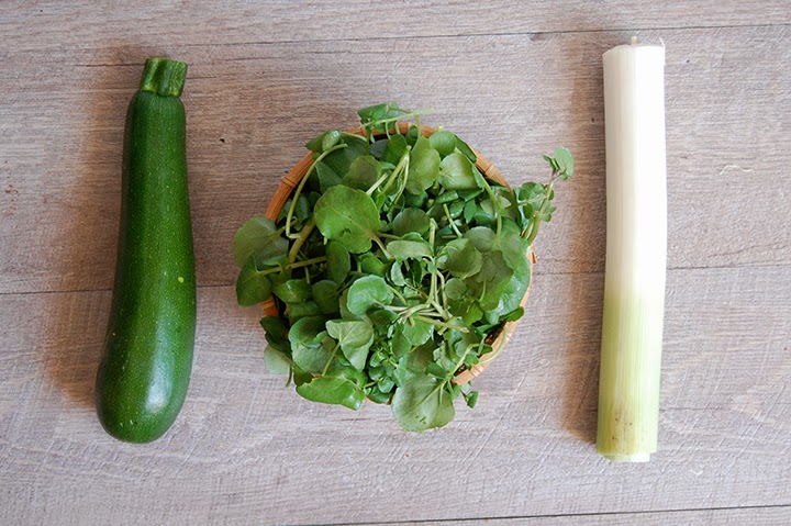 Une courgette, un poireau, des feuilles de cresson, un peu d’eau et hop. Mettez les à bouillir 10/20min et mixez.