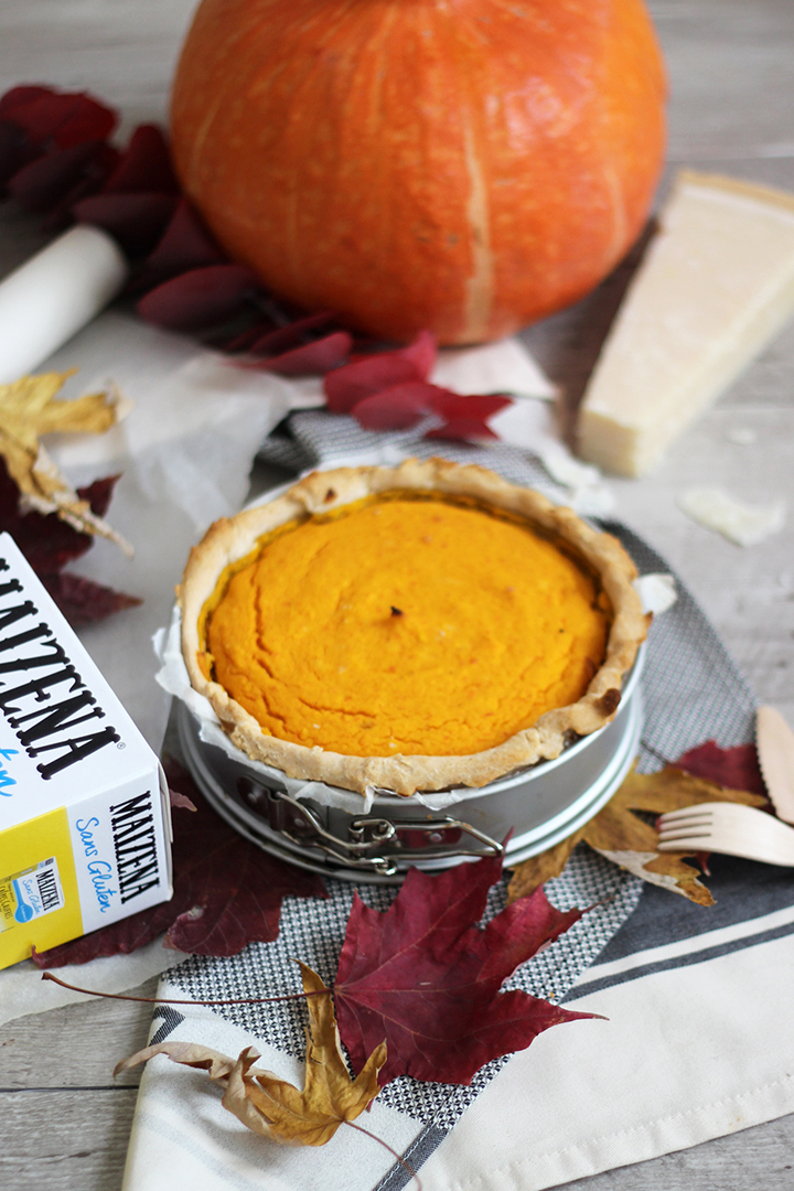 Cette recette à l'air délicieuse! Je ne connaissais pas la pâte à tarte sans gluten de Maïzena, je vais la chercher dés les prochaines courses, ça doit être plus léger qu'un pâte feuilletée classique… Merci pour cette bonne recette et cette découverte!