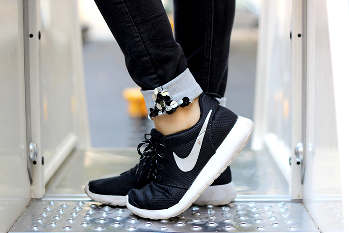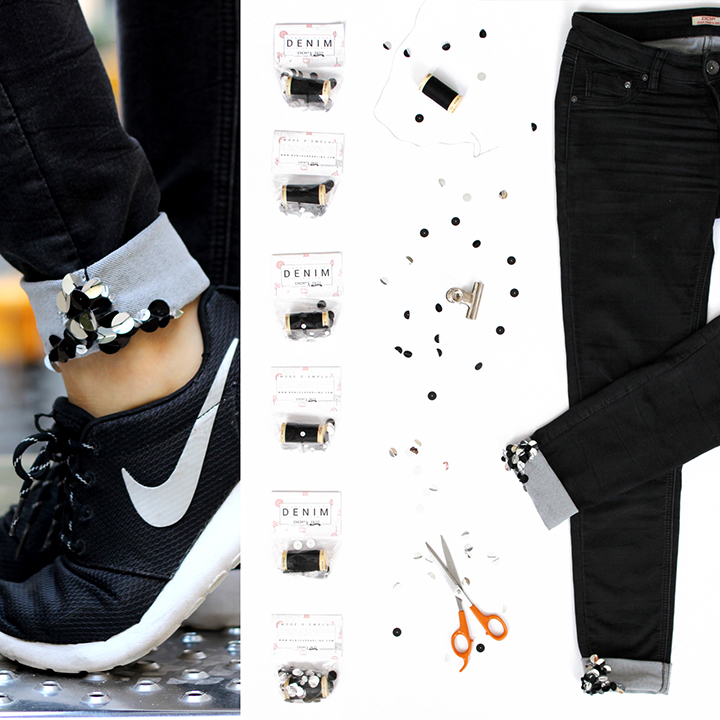 Pour l’occasion j’ai réalisé un petit DIY pour customiser mon jean. J’aime les créations simples mais pétillantes sur les vêtements. Aujourd’hui je vous propose donc de mettre un peu de paillettes sur votre jean. Je suis vraiment ravie du rendue, mon jean DDP pétille et j’ose le porter même en pleine journée. Avec mes basket pour l’originalité, avec mes talons pour une version nuit sophistiquée.