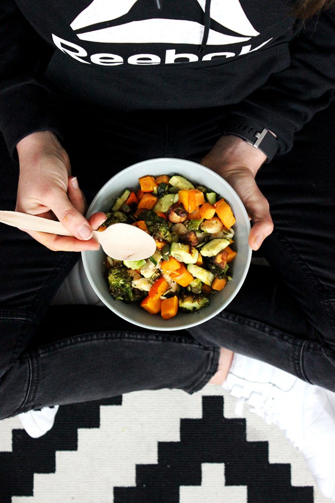 Je suis actuellement en perte de poids donc je limite les féculents, je n'en mange quasiment pas le soir. Mais j'écoute mon corps, si il en a besoin, je vais prendre 2 tranches de pain complet.