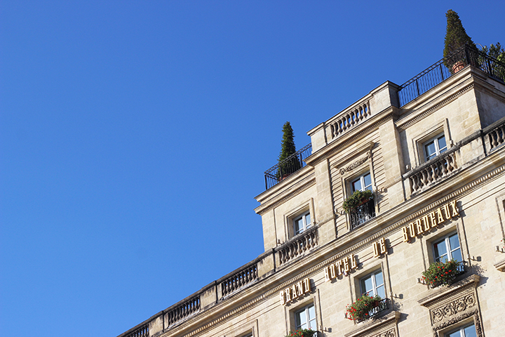 On ne peut pas le louper à Bordeaux. Trônant en plein coeur de la ville, face au Grand Théâtre, cet hôtel fait rêver. Belles voitures, service haut de gamme… J’ai beau vivre à Bordeaux j’ai toujours rêvé d’un jour pouvoir y séjourner ne serait-ce que le temps d’une nuit.