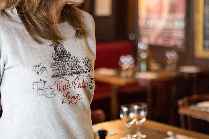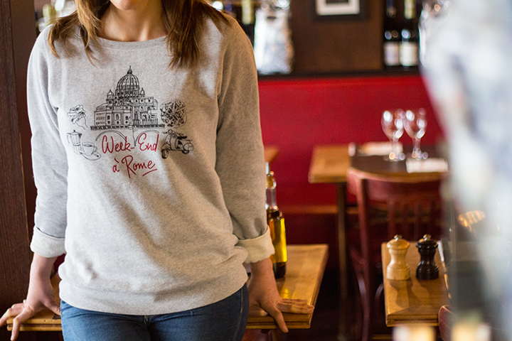 Super cette collab'! Toutes les pièces sont chouettes mais j'ai un petit faible pour le sweat Week-end à Rome 😉