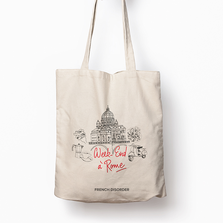 Avec le code CIAO pour toute commande avec un modèle de la collab, French Disorder vous offre le tote bag WEEKEND A ROME (jusqu’au 31 mars).